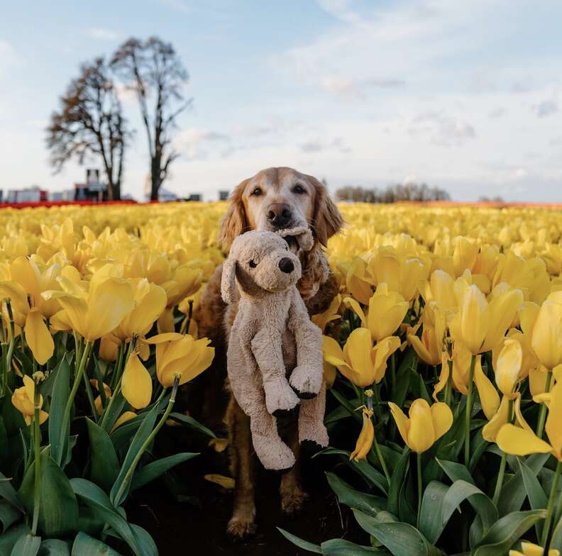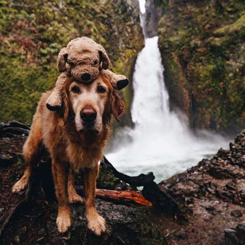 If you happen to meet Hana and her golden retriever, Gumbo, out on the hiking trail (or really anywhere), chances are you’ll also meet Shrimp, Gumbo’s plushie look-alike.